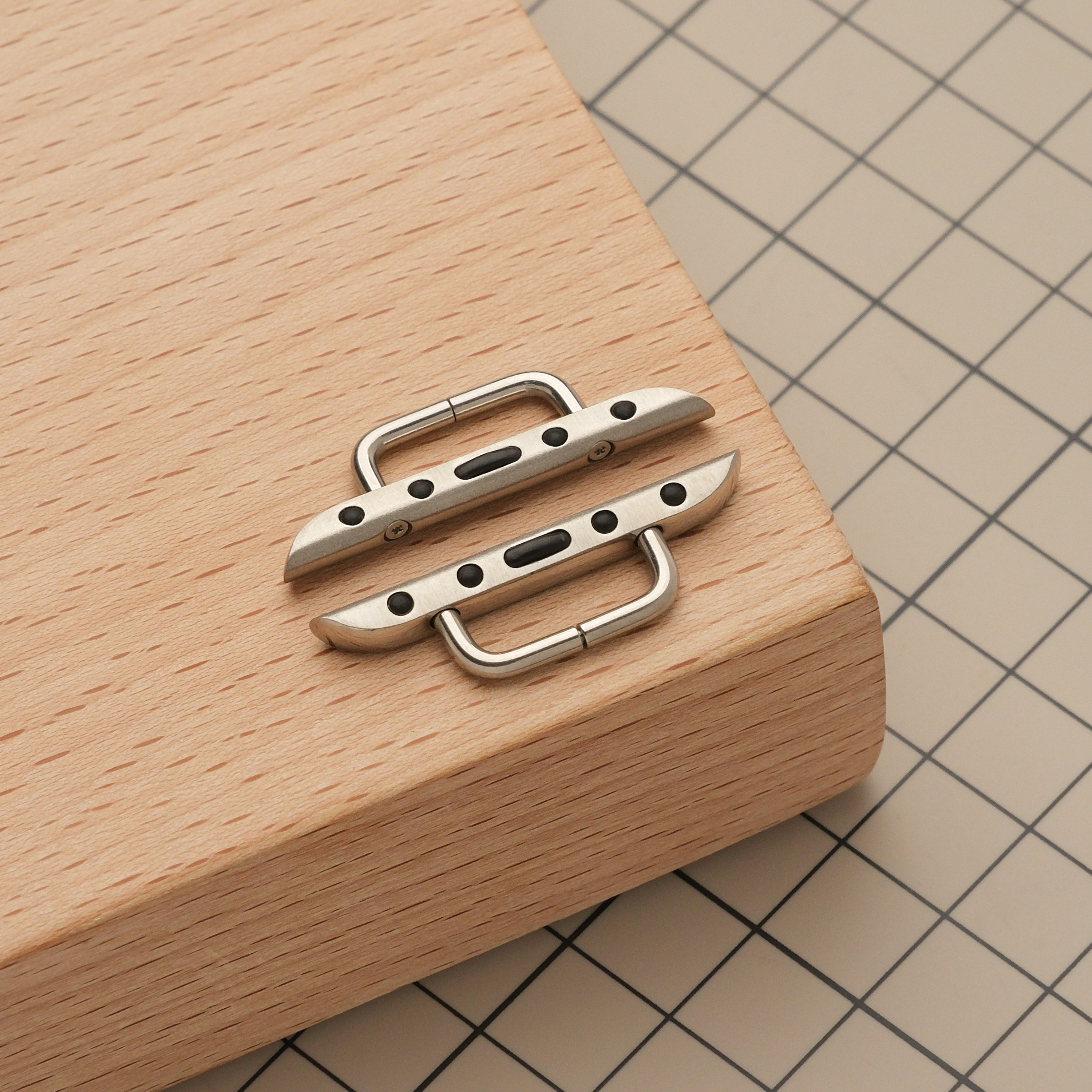 Специальные адаптеры для ремешков Double Tour (в двойной обхват запястья). Основа ремешка будет 14мм, и соответственно ему необходимо взять застежку а-ля Ермес 14мм, которая также скорее всего есть у нас в магазине. Обратите внимание на фотографии в карточке и сравнение по размерам. Сейчас в наличии размеры только 38 и 42 мм, и они сверху не повторяют геометрию адаптеров 40-41-44-45 мм. Тем не менее, так как дужка здесь расположена сильно выше, чем на обычных адаптерах, ремешок не будет цеплять корпус, но об этом вам важно знать и также это важно проговаривать с заказчиком. В разделе "Статьи" есть подробный текст о размерах адаптеров для Apple Watch, благодаря которому вы сможете легко в них разобраться.