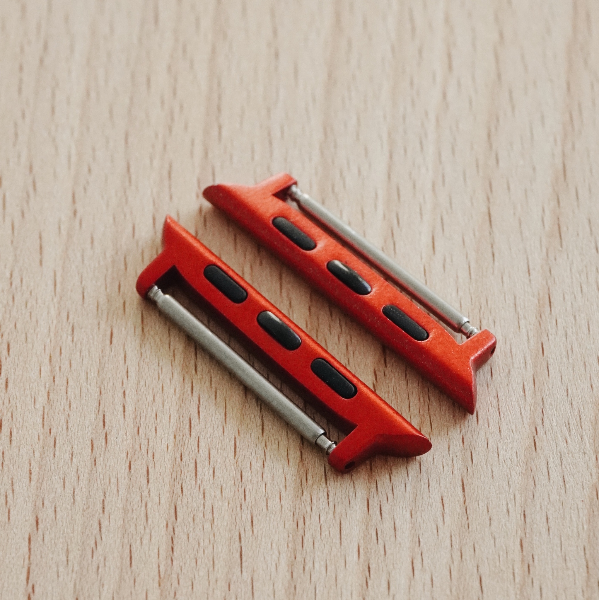 В разделе "Статьи" есть подробный текст о размерах адаптеров для Apple Watch, благодаря которому вы сможете легко в них разобраться. ВНИМАНИЕ: Друзья, адаптеры красного типа, к сожалению, выкрашены не так качественно, как все остальные цвета адаптеров, поэтому на них могут быть небольшие сколы краски. Мы отбраковали все очень страшные адаптеры, и отправляем только те варианты, которые не имеют сколов на местах, которые видны, когда адаптер с ремешком установлен в часах. Важно отметить, что это слабое покрытие может продолжить проявлять себя и дальше, то есть возможно появление большего количества сколов на краске в процессе эксплуатации. Популярные адаптеры на штифтах для Apple Watch. Штифты толщиной 1.5 мм идут в комплекте. Цена указана за пару адаптеров! Они полностью совместимы с Apple Watch, размеры 38 и 42 мм соответствуют Series 1/2/3, а 40/41/42 и 44/45/46/49 - всем следующим поколениям, начиная с Series 4, 5, 6, 7, 8, 9, 10, SE, Ultra. Подробности и нюансы отмечены в статье об адаптерах, ссылка на которую есть в описании выше =)) В доступных вариантах в карточке товара дополнительно указывается, ремешок какой ширины в основании подходит для конкретной пары адаптеров. В этой модели адаптеров ремешок держится на штифте, который легко и быстро снимается. Из корпуса часов таким образом видны только два «ушка», и благодаря этому адаптер имеет красивый дизайн, подходящий под самые разные стили. Для адаптеров на штифтах крайне важно делать ремешок, который не будет свободно гулять по штифту влево-вправо, так как это может привести к сжатию пружины на штифте и срыванию ремешка с адаптера. Ремешок по ширине у основания должен быть точно по размерам адаптера. Адаптер имеет три прорезиненные вставки, центральная содержит в себе пружинный механизм с фиксатором, две боковые - мягкие резинки, сдерживающие люфт адаптера в корпусе часов. Правильная установка адаптера - тремя черными точками вверх, центральная кнопка должна стоять стальной частью вниз.