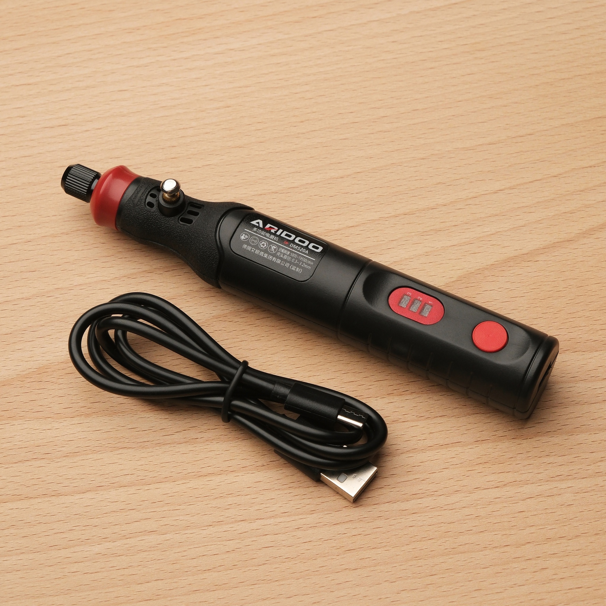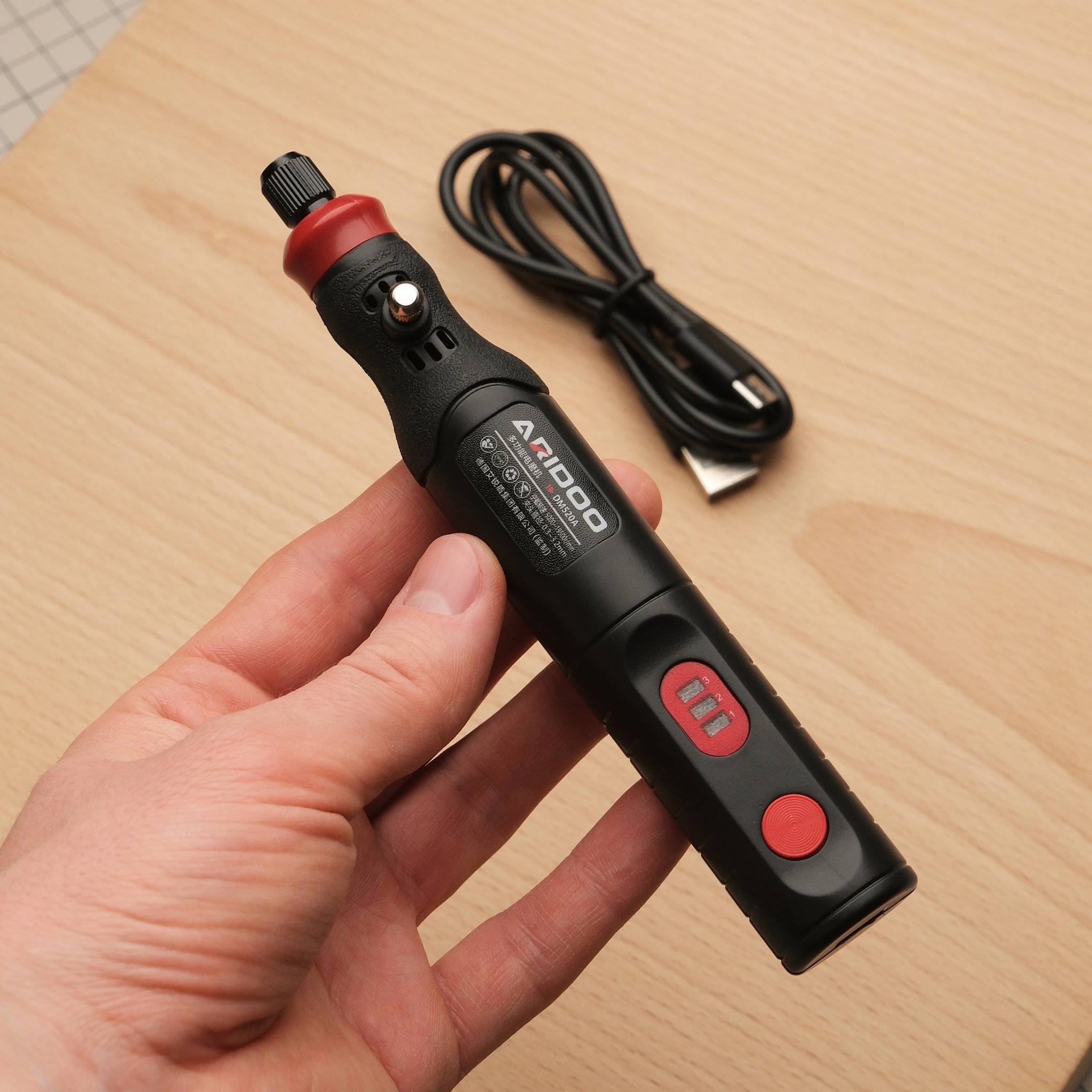 Диаметр зажима 0.3-3.2 мм. Аккумулятор 800мАч / 4.2В. Имейте ввиду, что мощности достаточно именно для полировки, сильное прижатие наждачкой или сликером скорее остановит моторчик, для таких задач лучше выбрать что-то помощнее, проводное. В комплекте идет кабель для зарядки USB-A - USB-C. Насадок в комплекте нет, они приобретаются отдельно в зависимости от потребностей.