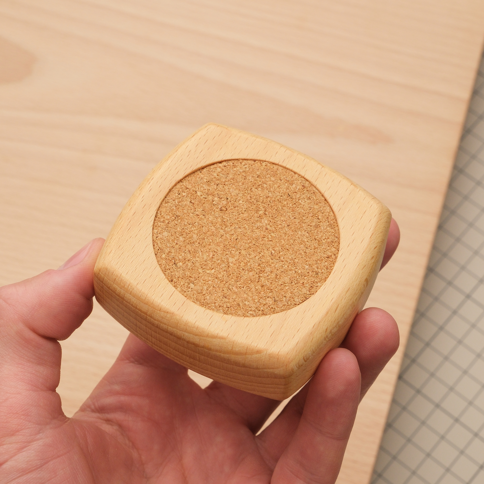 Красивая деревянная подставка для хранения игл. Материал - бук. Диаметр пробкового основания - 5 см, общий размер игольницы - 7*7 см.