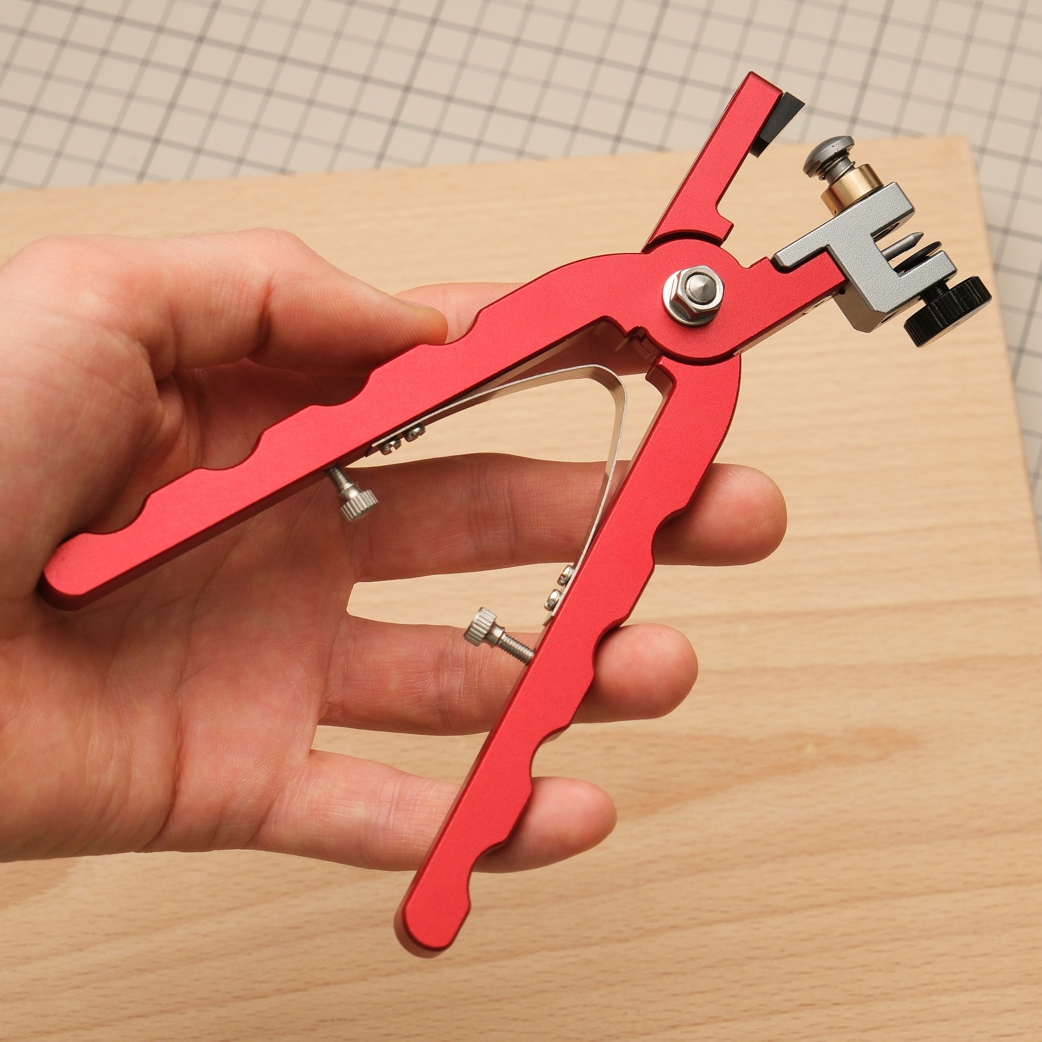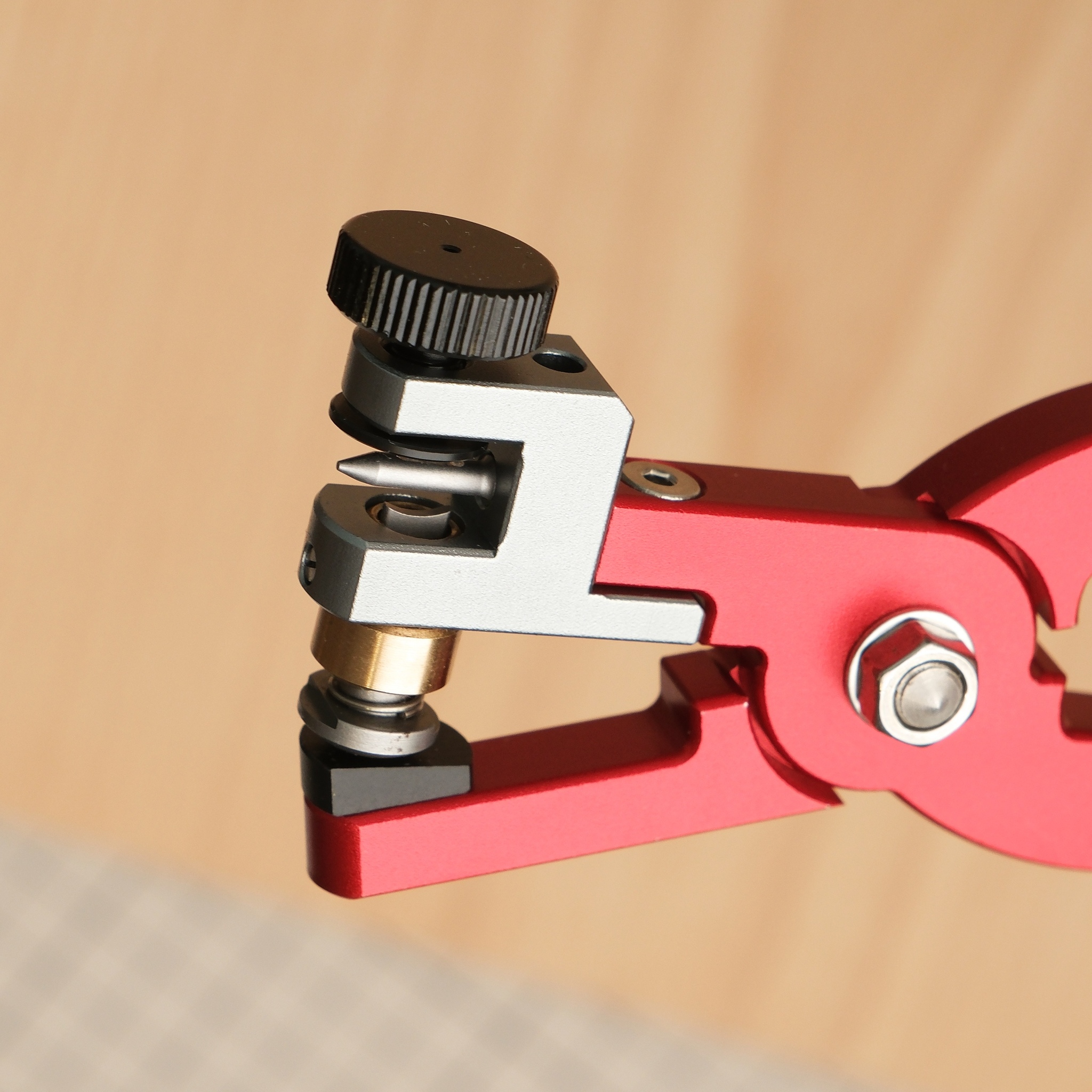 Чтобы быстросъемные штифты вставали четко, а отверстие не растягивалось после сборки ремешка, его нужно пробивать уже после сборки. Для этого нужен данный инструмент. Необходимо вставить его в край ремешка с нужной стороны, подкрутить пластиковый упор (это нужно, чтобы не погнуть штырь с отверстием под давлением инструмента и ремешка) и далее нажать =)) отверстие под быстросъемный штифт четко пробьется в нужном месте!