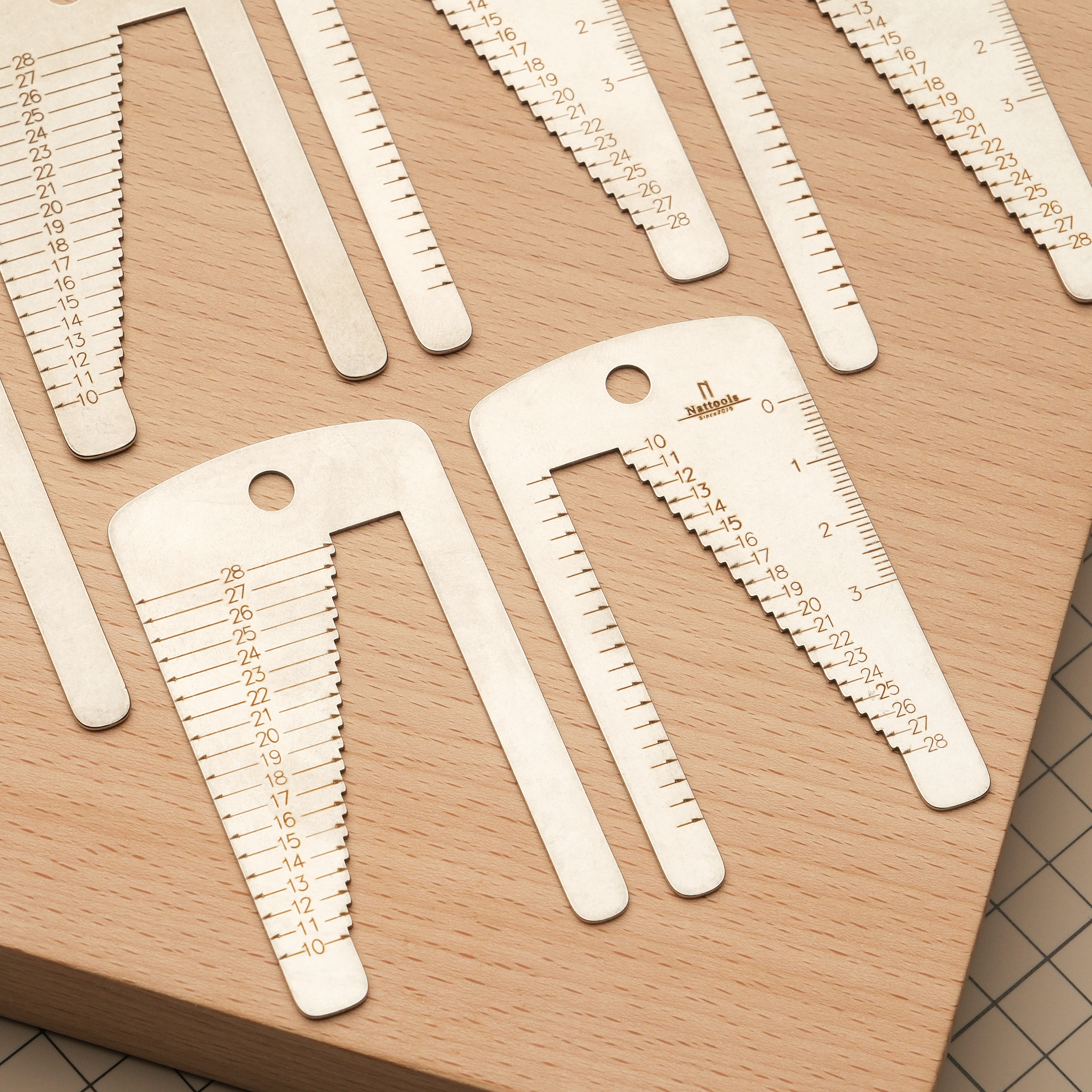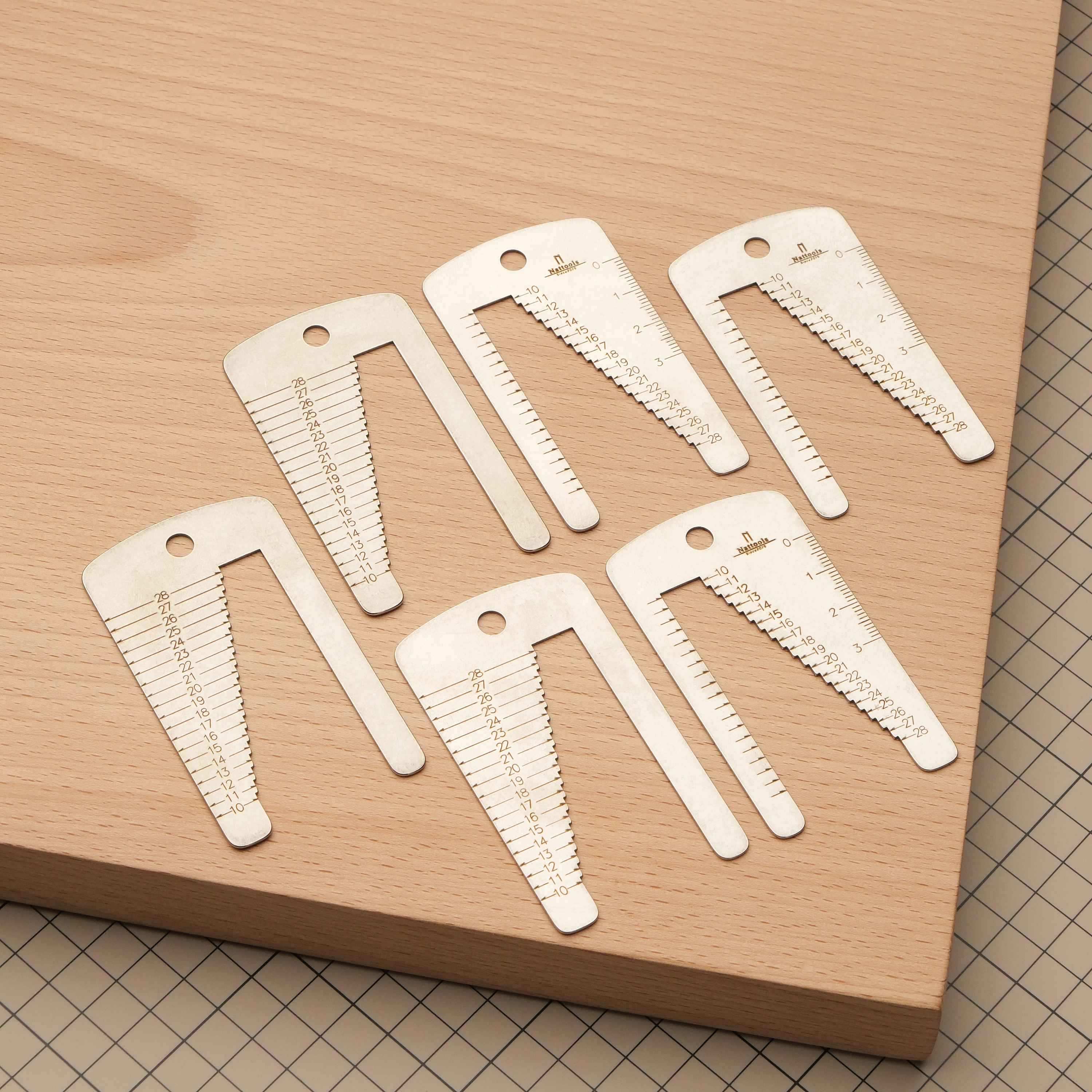 Вспомогательный инструмент от Nattools помогает при шлифовке и покраске часового ремешка, чтобы можно было приложить деталь и прикинуть, насколько хорошо она подходит под нужную ширину ушек часов или часовой застежки. Как видно на фото, имеет разметку с двух сторон.