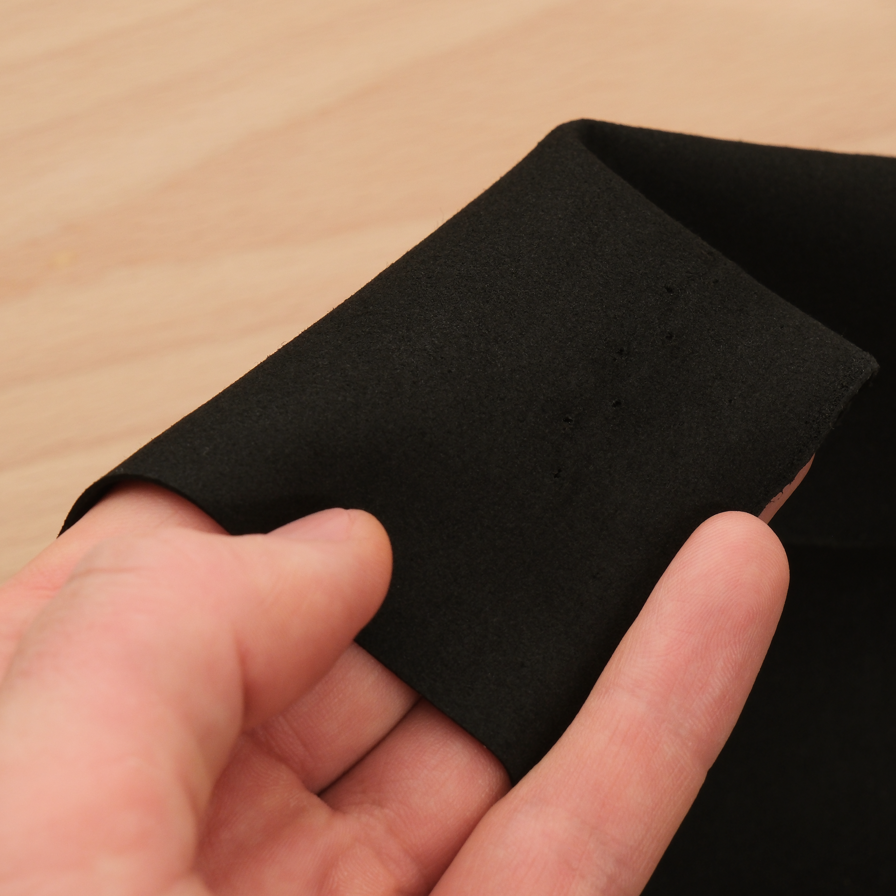 Микрофибра а-ля велюр толщиной 0.7 мм. Такая же мягкая, как микрофибра Suede, при этом на ощупь максимально похожа на Baltex. Отличный материал как для подклада, так и для межподклада - как дублирин для мягкой кожи. Очень интересный материал, который можно использовать по-разному. Продается листами 140*50 см.