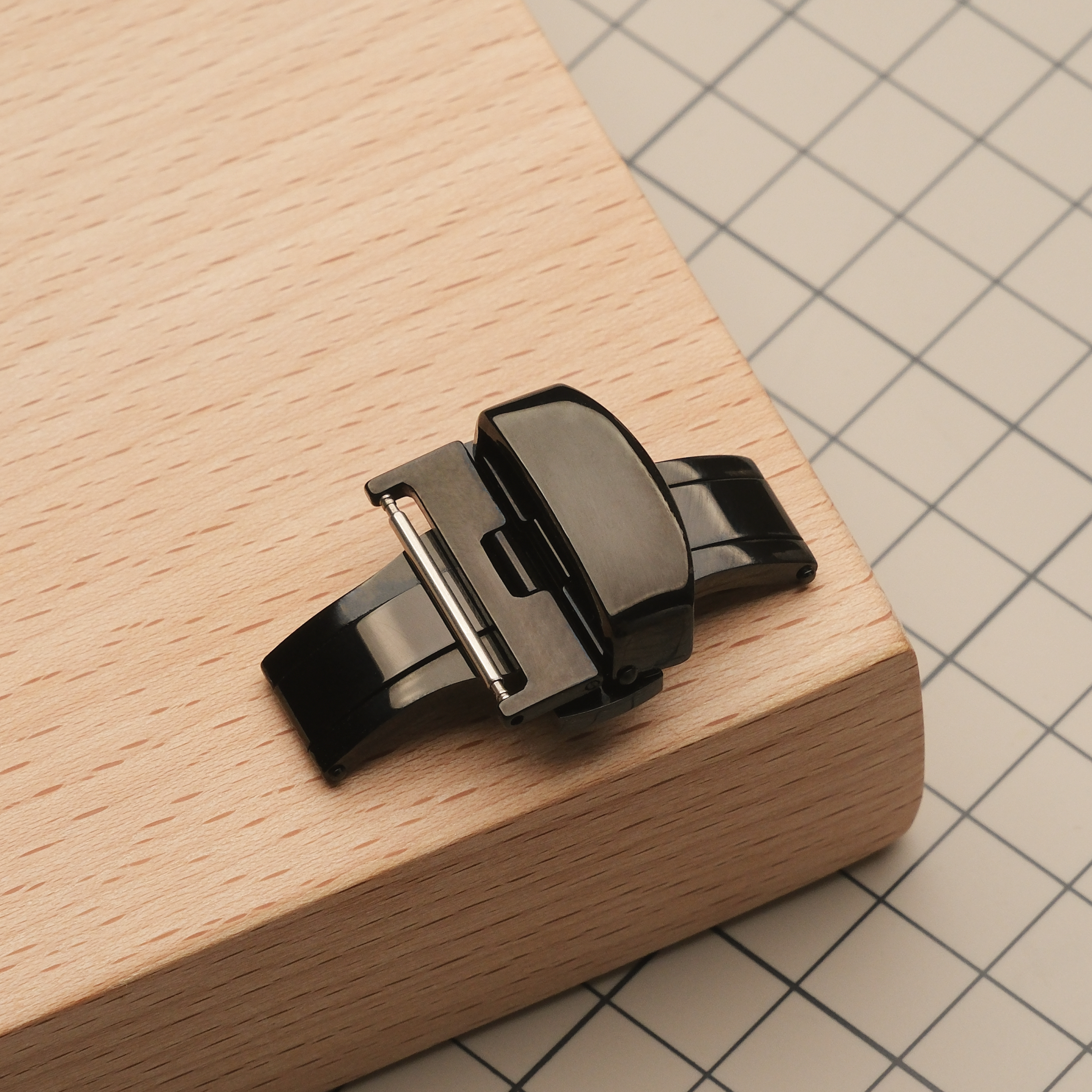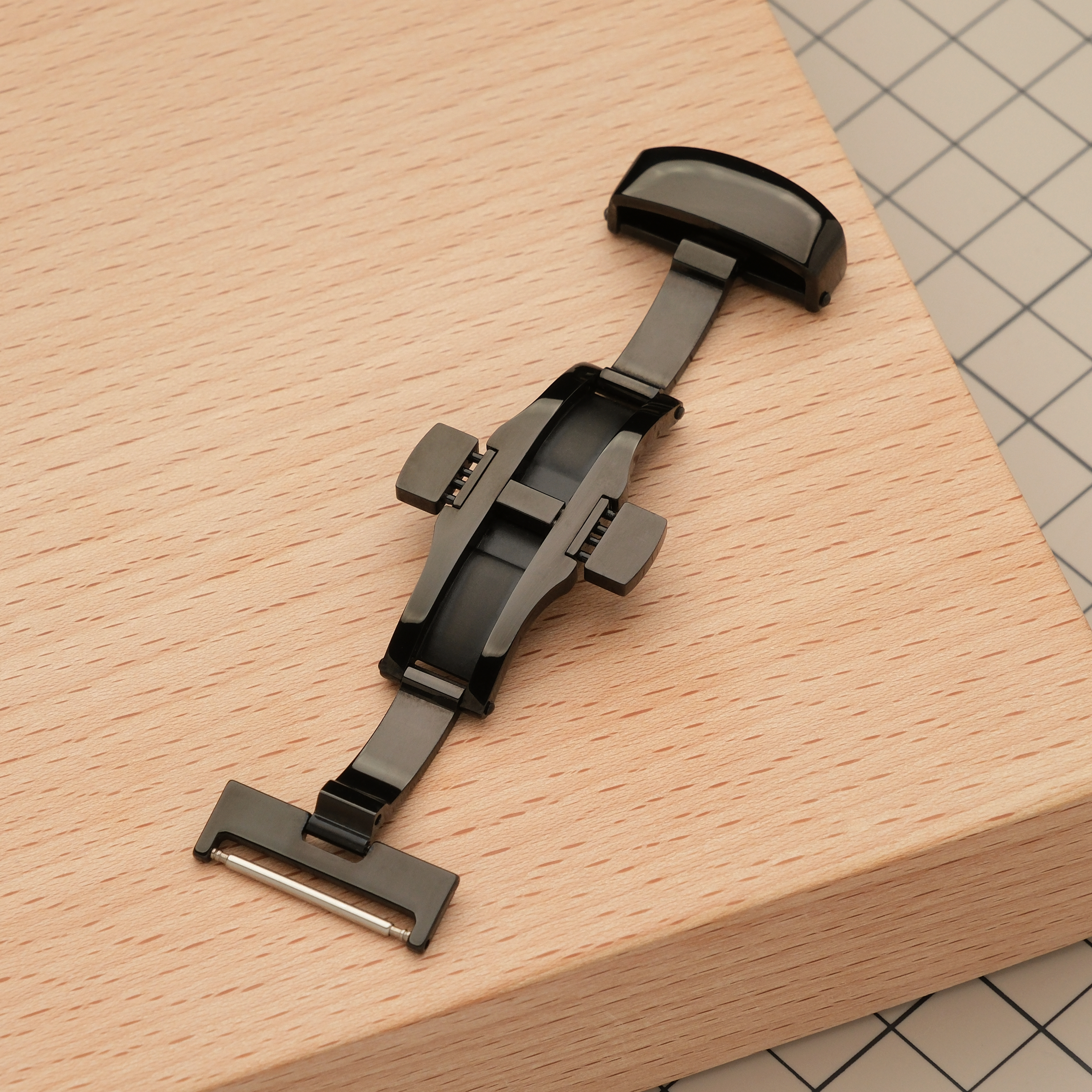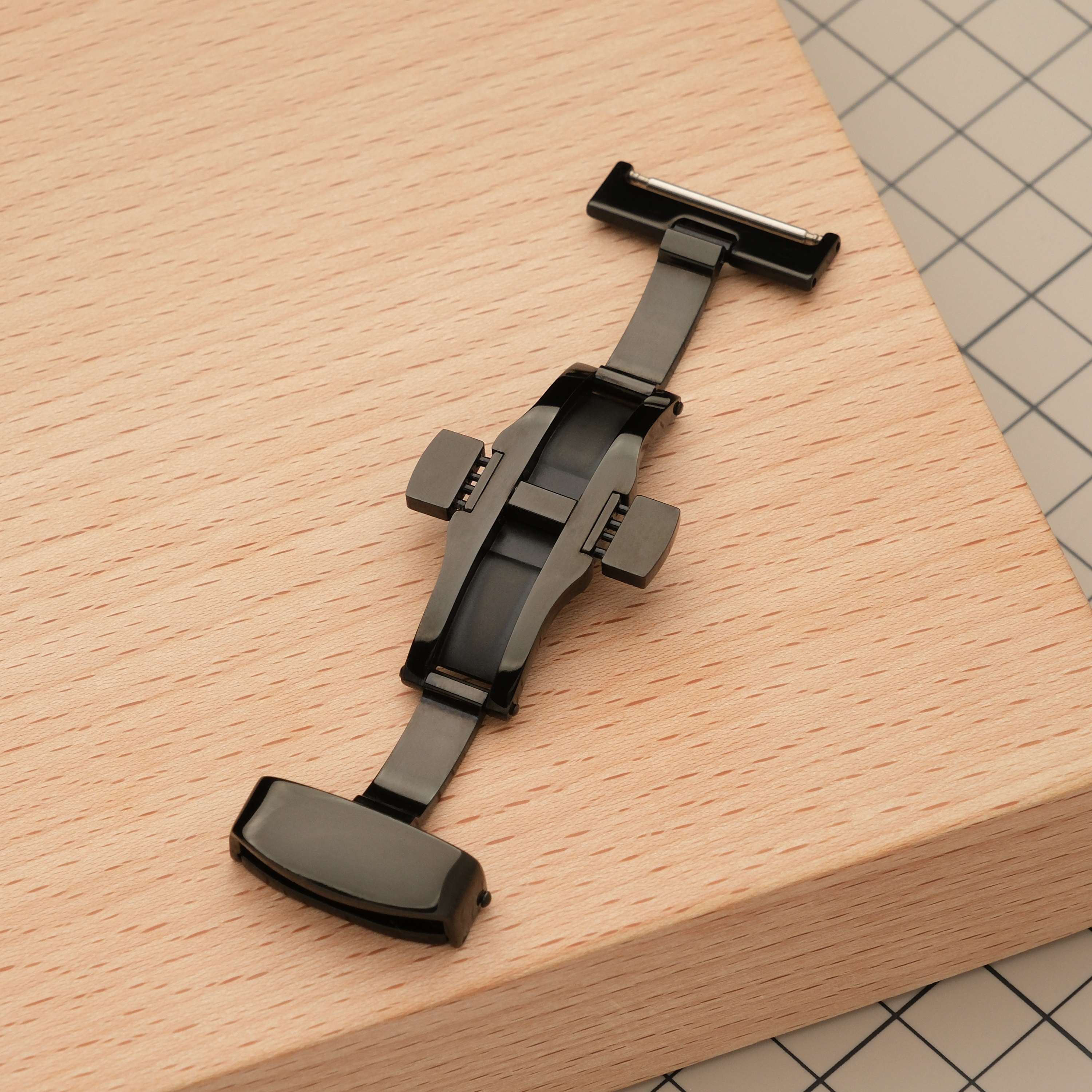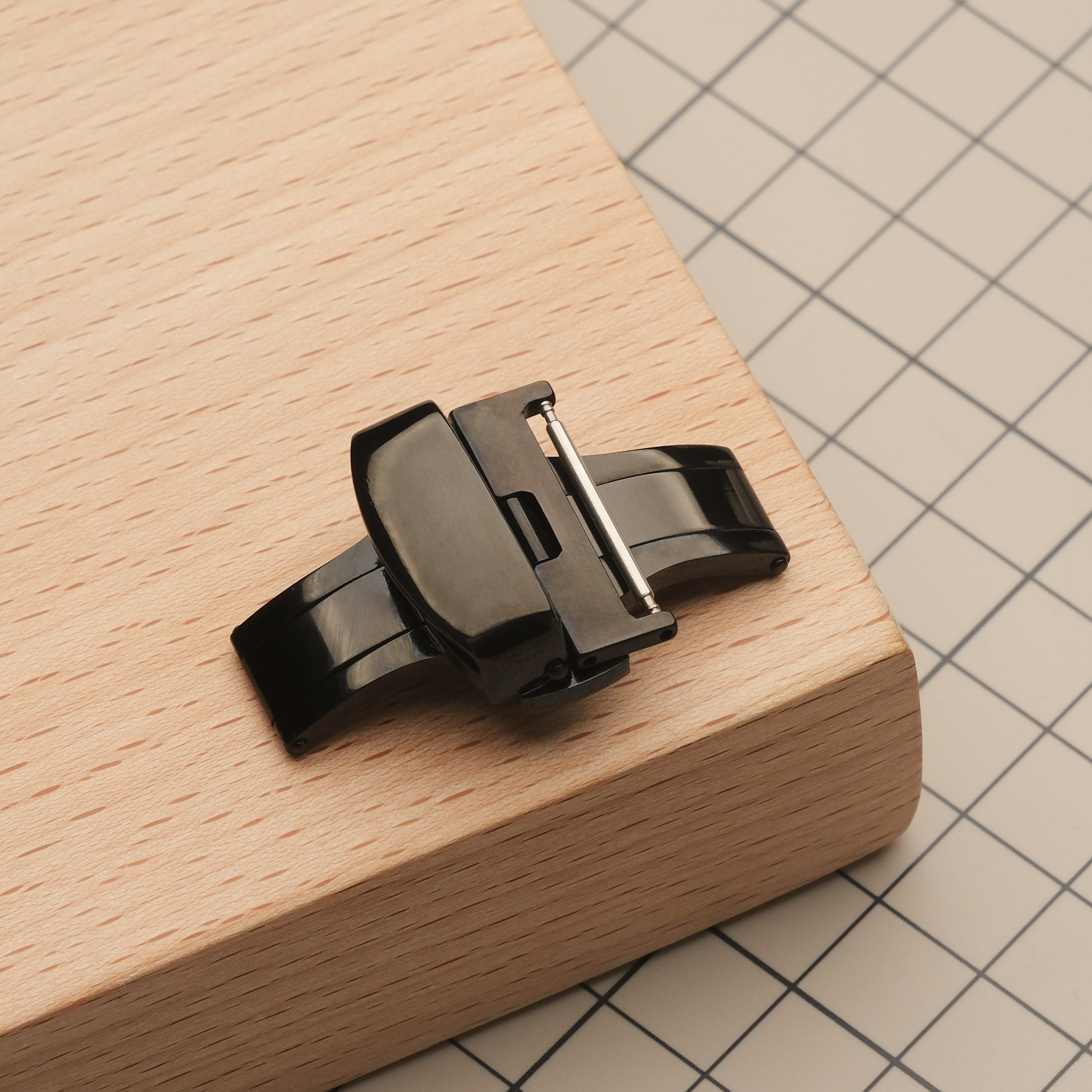 Эта автоматическая застежка-бабочка используется вместо обычной бакли на часовых ремешках высокого класса. Использование такой застежки продлевает жизнь ремешку, так как ежедневно не происходит перегибов его длинной части, а торцы ремешка не трутся об металл. Кроме этого, снимать и надевать часы с ней значительно удобнее и быстрее, а боковые кнопки на застежке не дают ей свободно раскрываться. Застежка изготовлена из нержавеющей стали. Цвет нанесен гальваническим методом. Штифт для короткой части ремешка идет в комплекте. Для длинной части ремешка потребуются круглые отверстия диаметром 2 мм.