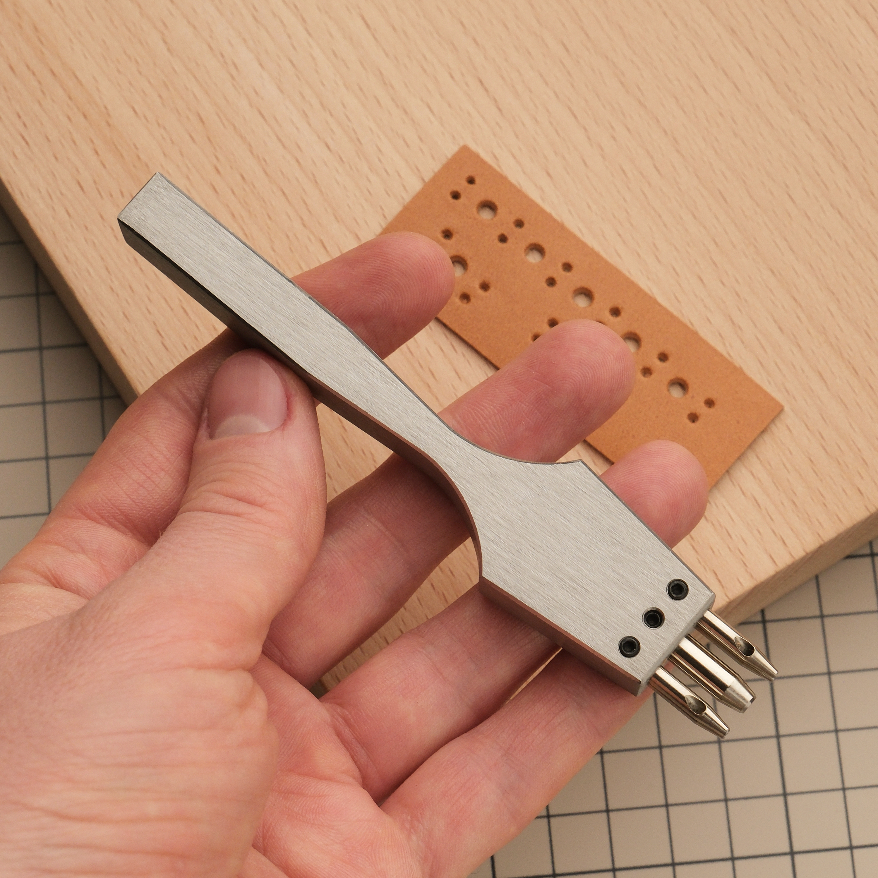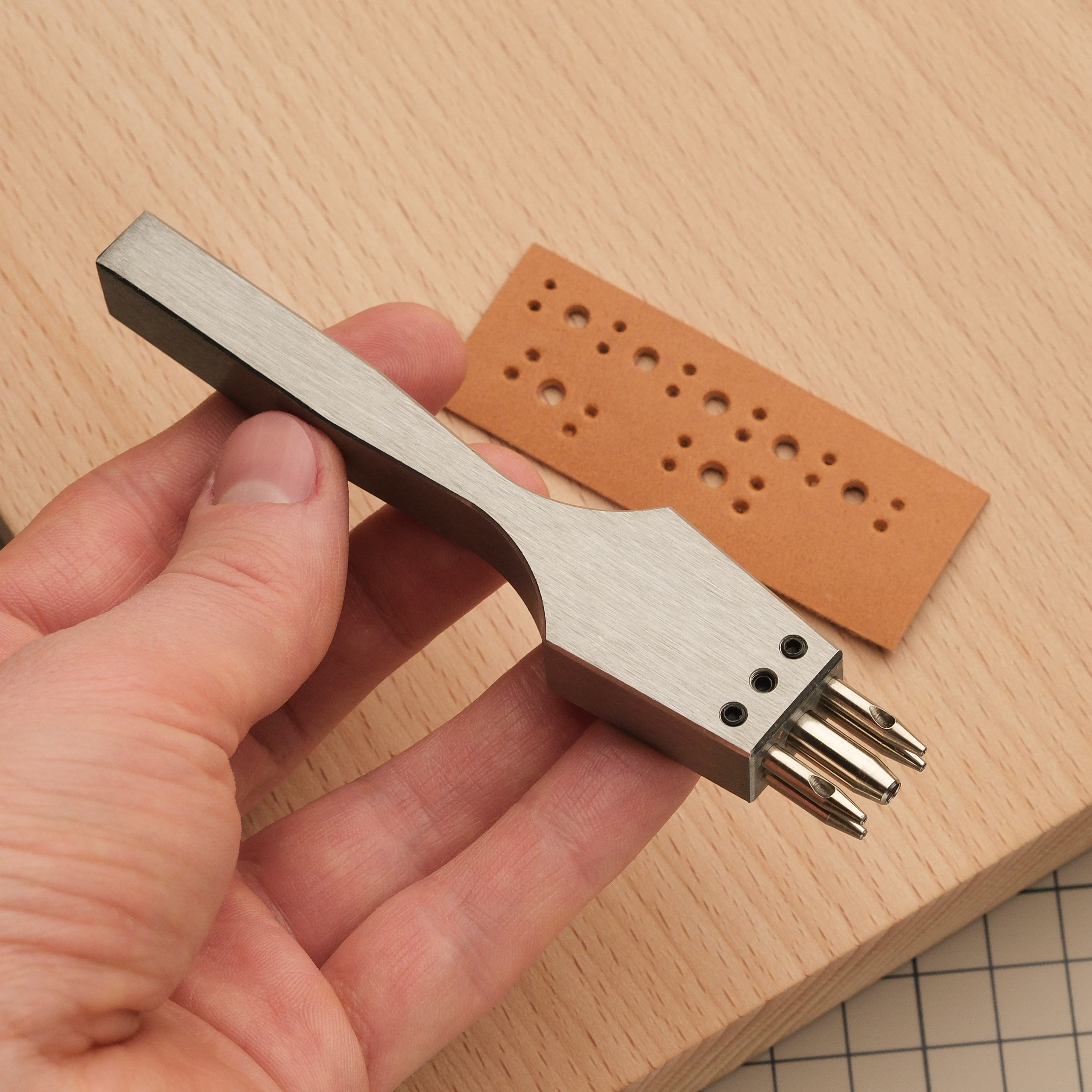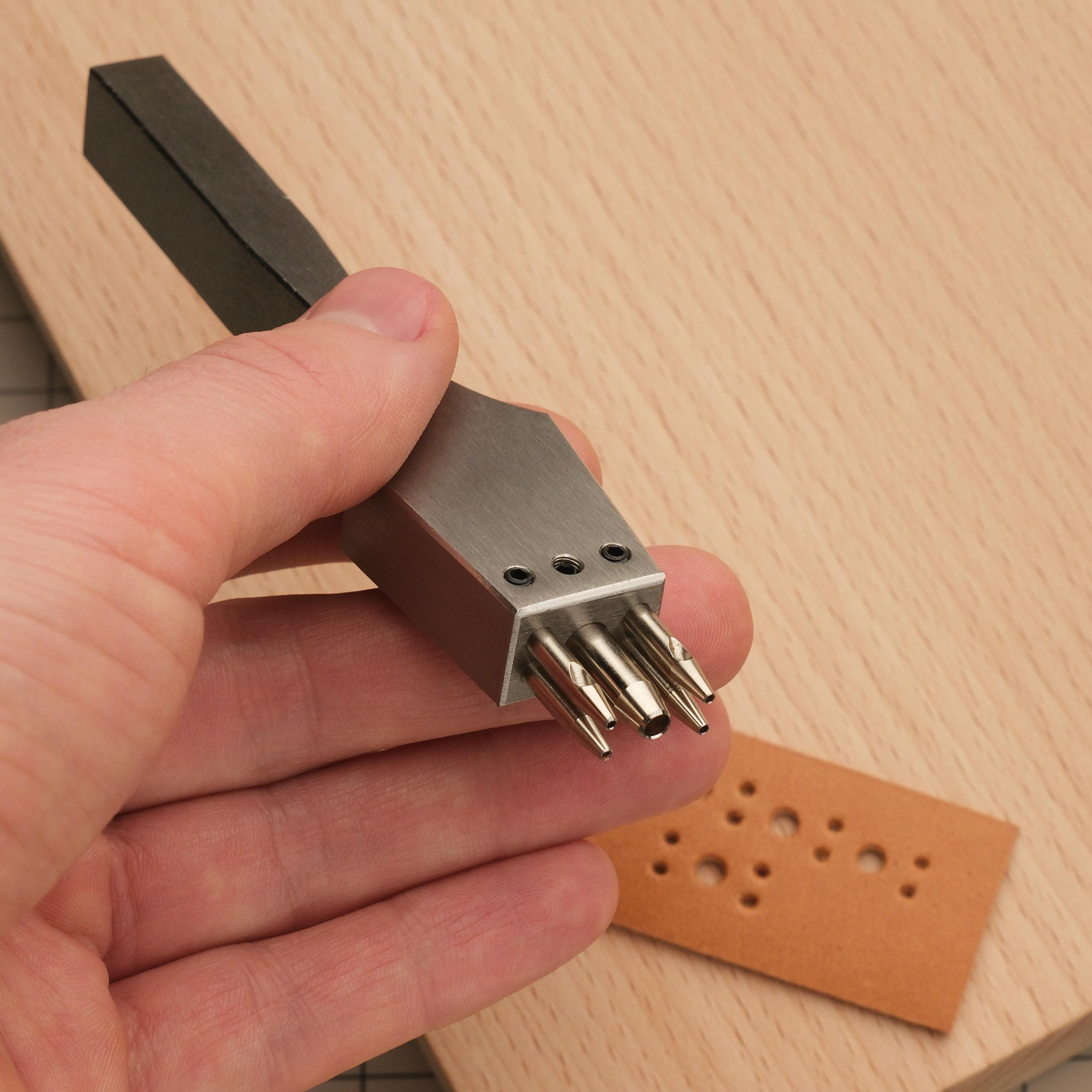 Отличный пробойник для брогирования кожи. Делайте с его помощью оригинальную перфорацию вдоль шва =) Вариант на 5 зубьев годится как для прямых, линий, так и для косых, если снять один ряд малых зубьев. Зубья съемные. Диаметры 1 и 3 мм.