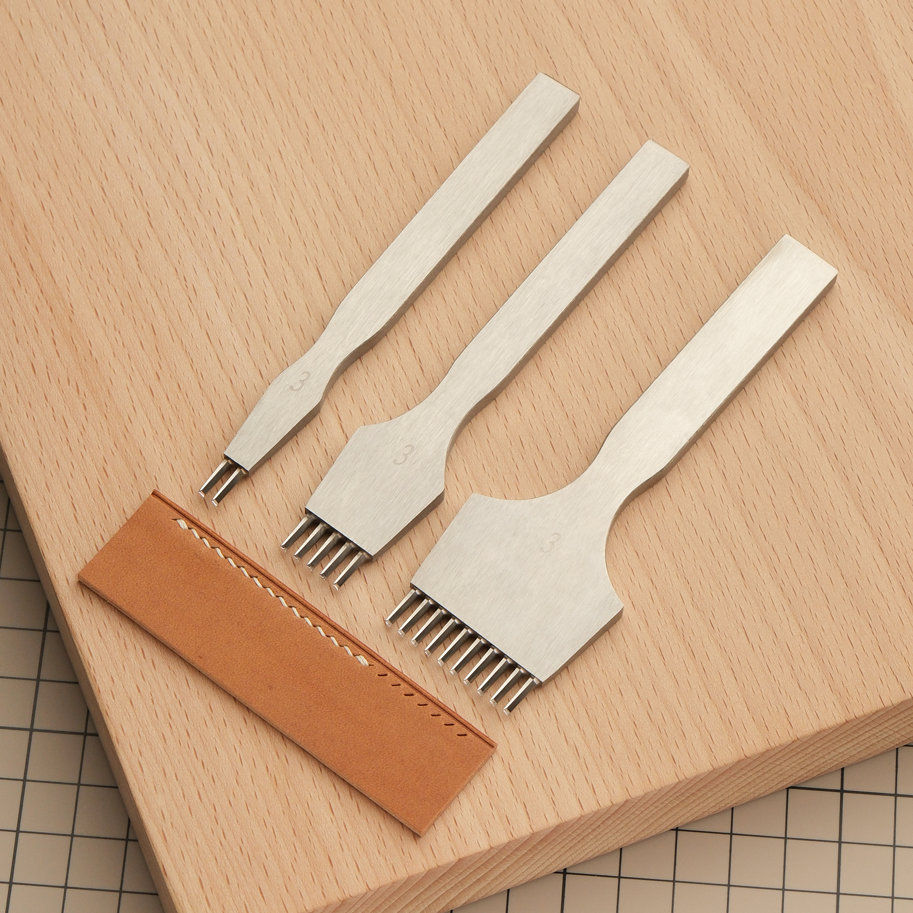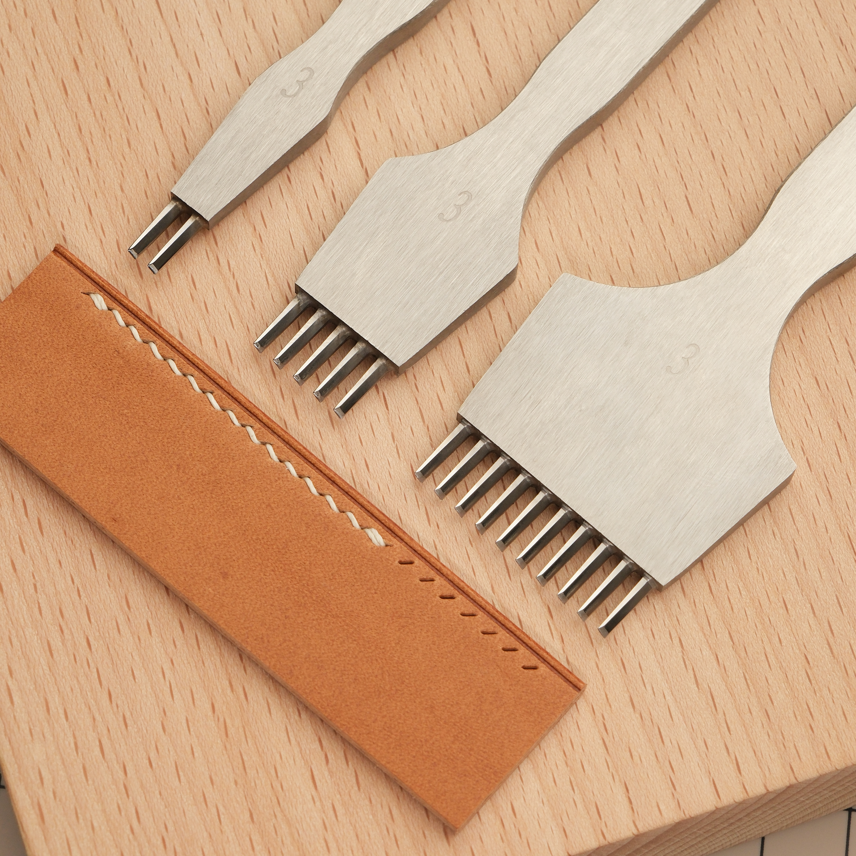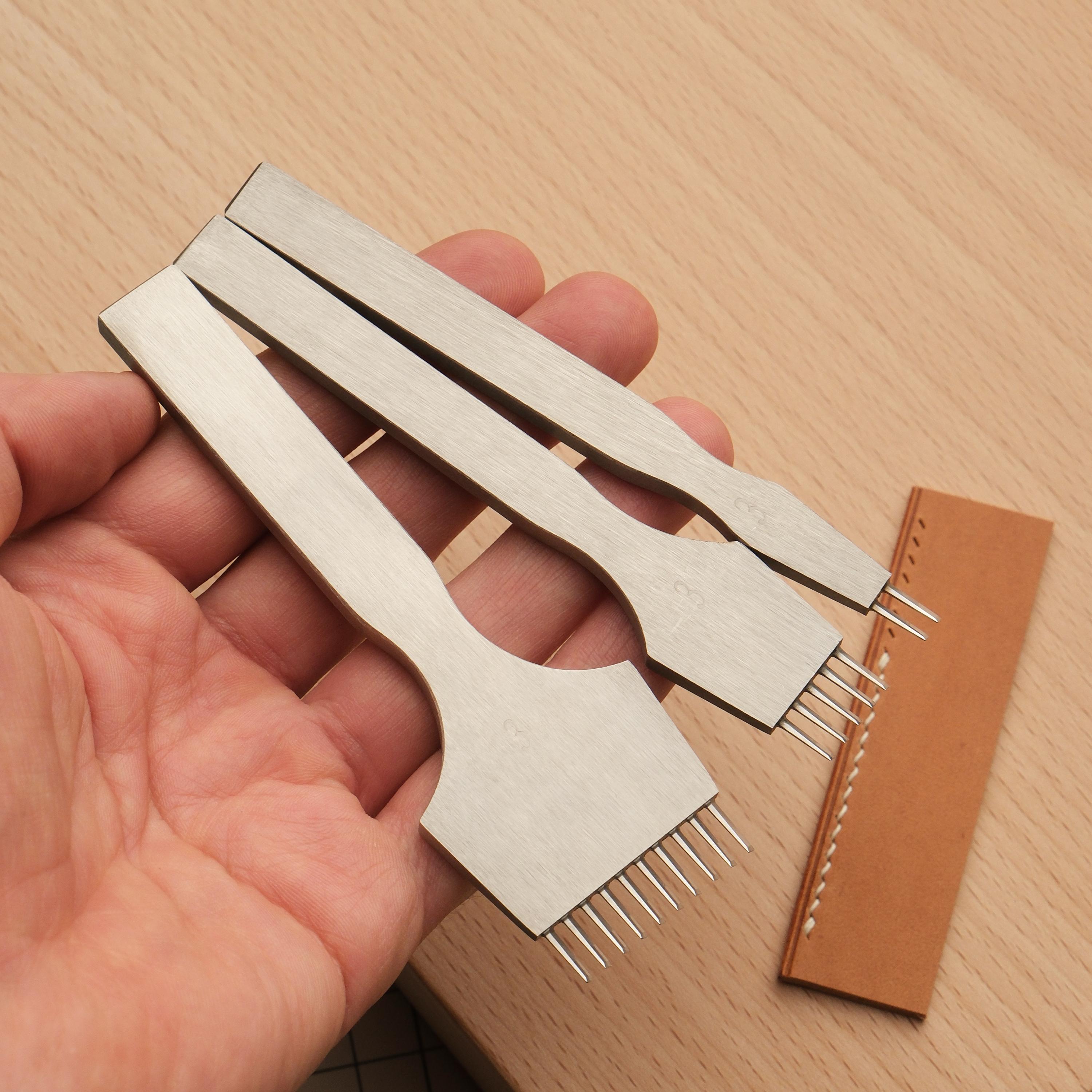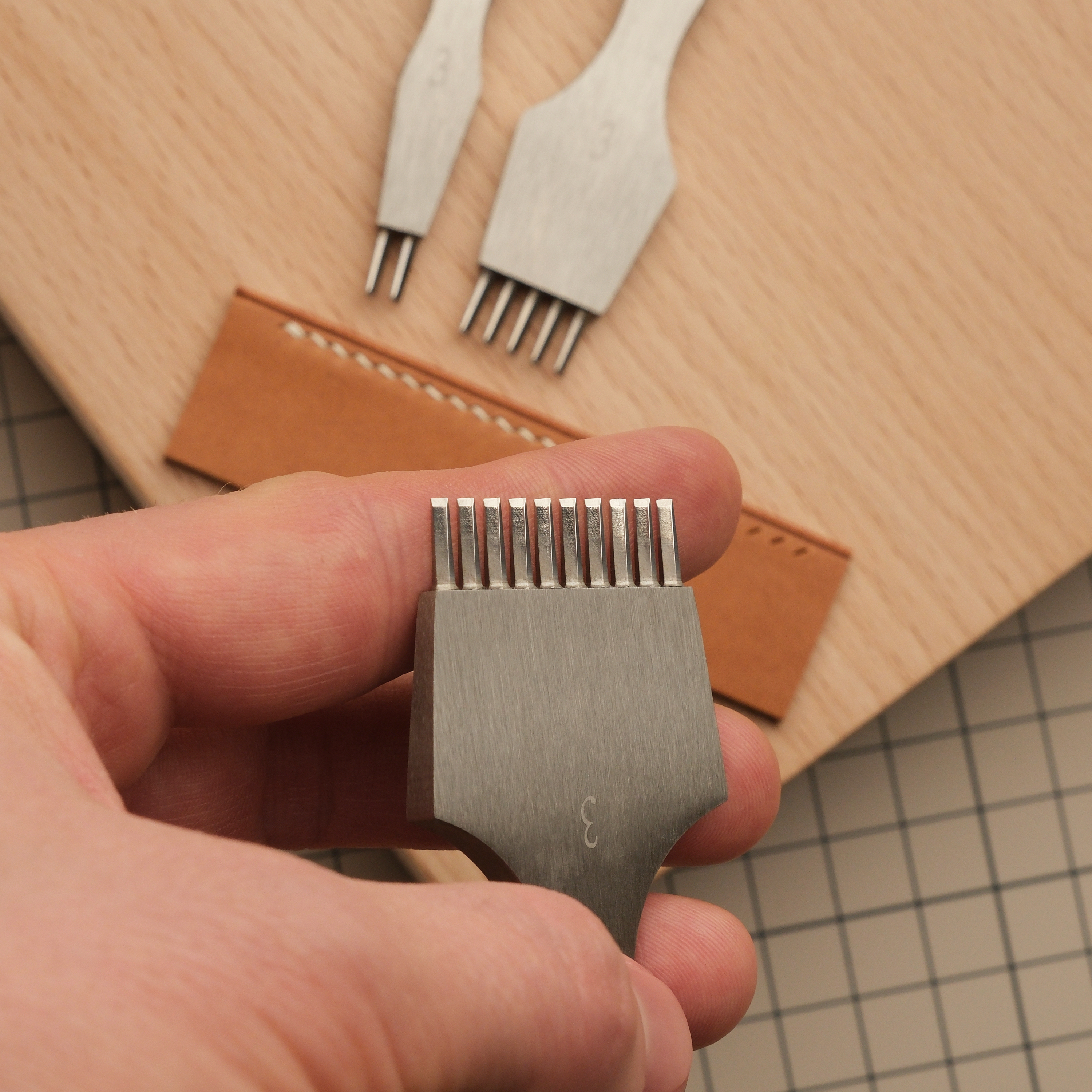 Выбирайте в карточке товара нужный шаг и количество зубьев пробойника для сборки нужного комплекта! Отличный бюджетный строчный пробойник для кожи французского типа. На мой сугубо личный взгляд, это реально отличное бюджетное решение. Несмотря на цену, геометрия зуба отлично подходит для работ разной сложности, зубья можно удобно подтачивать. Хорошая геометрия сужения и ширина зуба, которая очень редко встречается в бюджетных вариантах. Длина зубьев - около 8 мм. Зубья полированные.