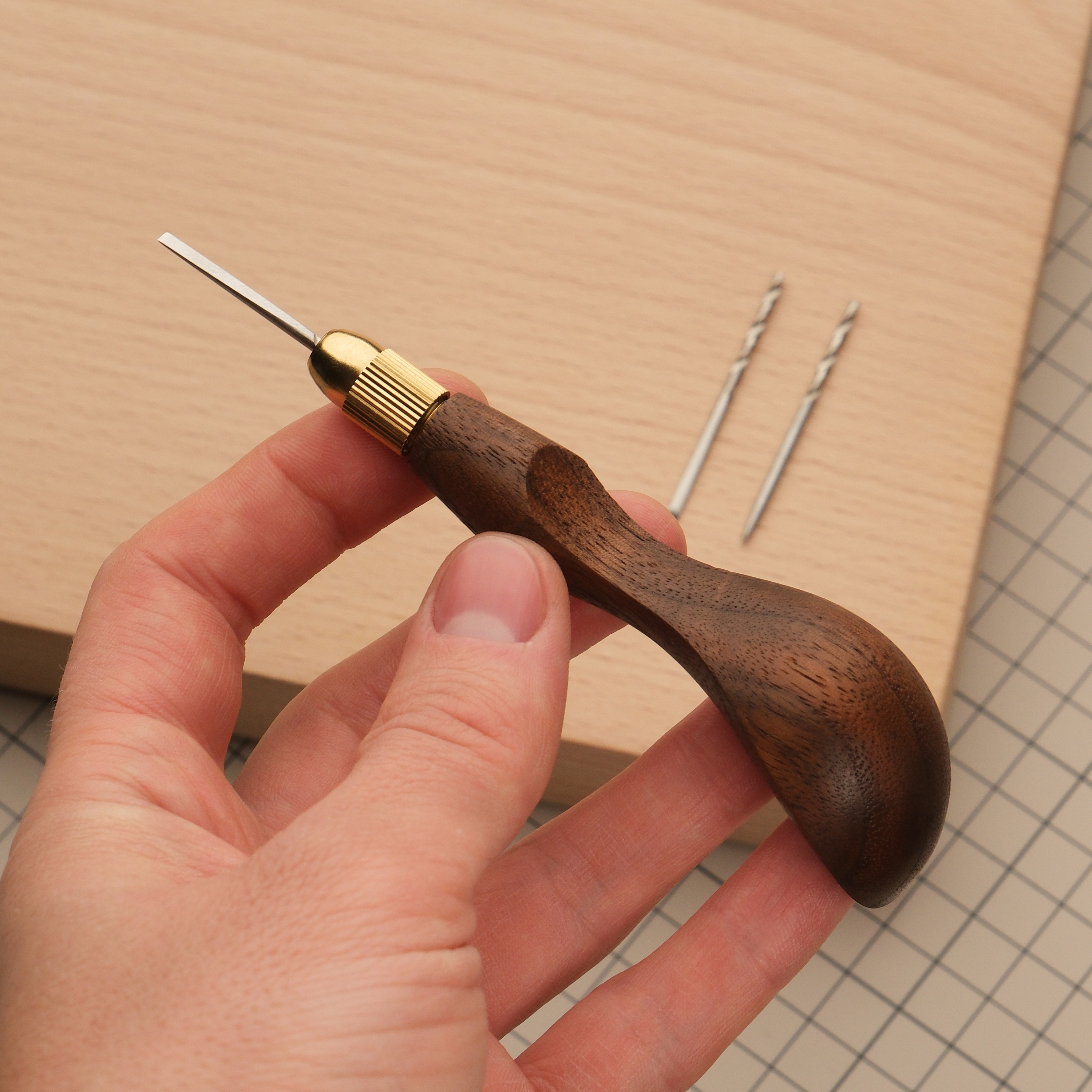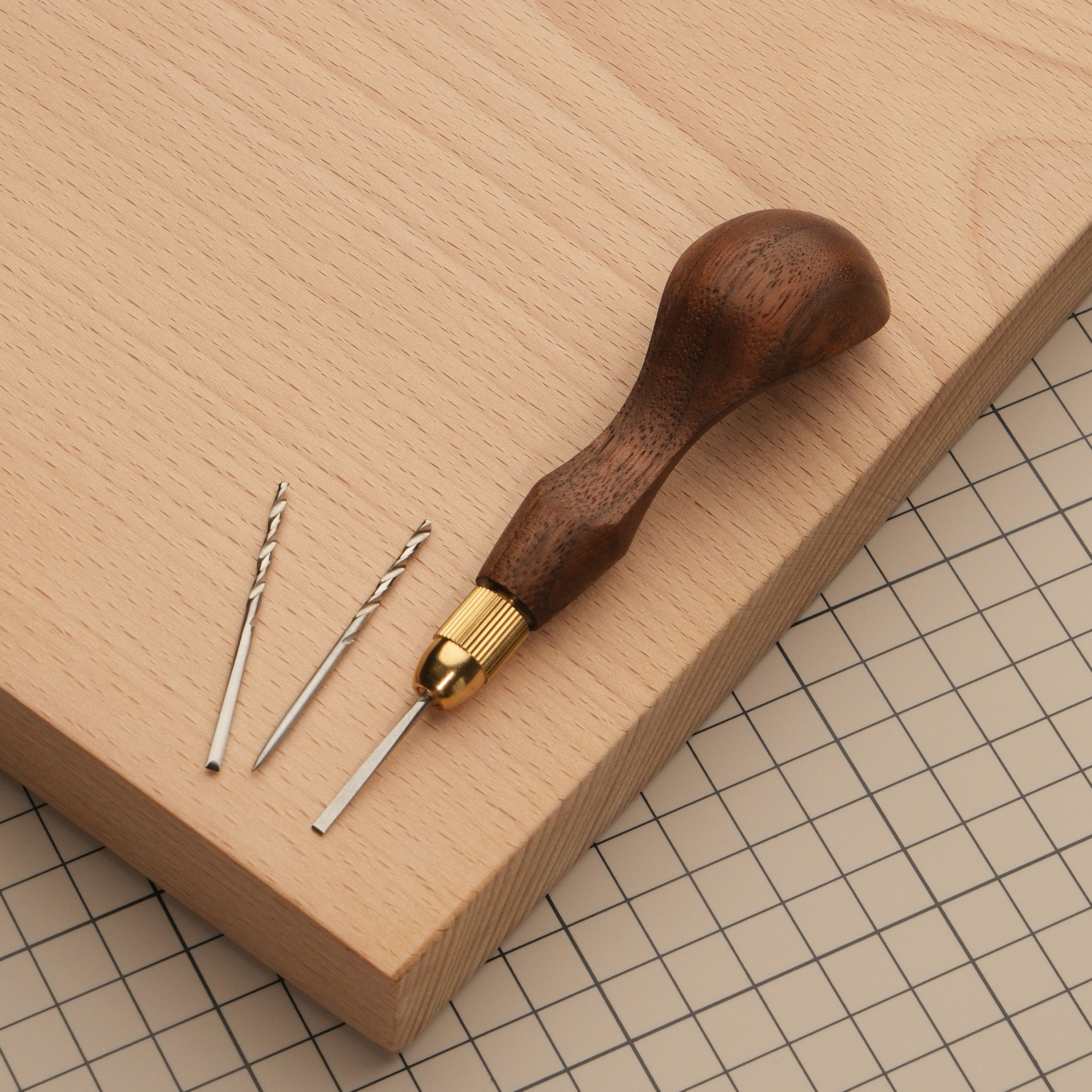 Шило для нанесения разметки, докола и работы с пробойниками французского типа с острым плоским наконечником 2мм и с наконечником "Оливка". Эргономичная рукоять из ореха анатомической формы. Жало из инструментальной стали Р6М5 (сверло). Инструмент полностью готов к работе, не требует подготовки.