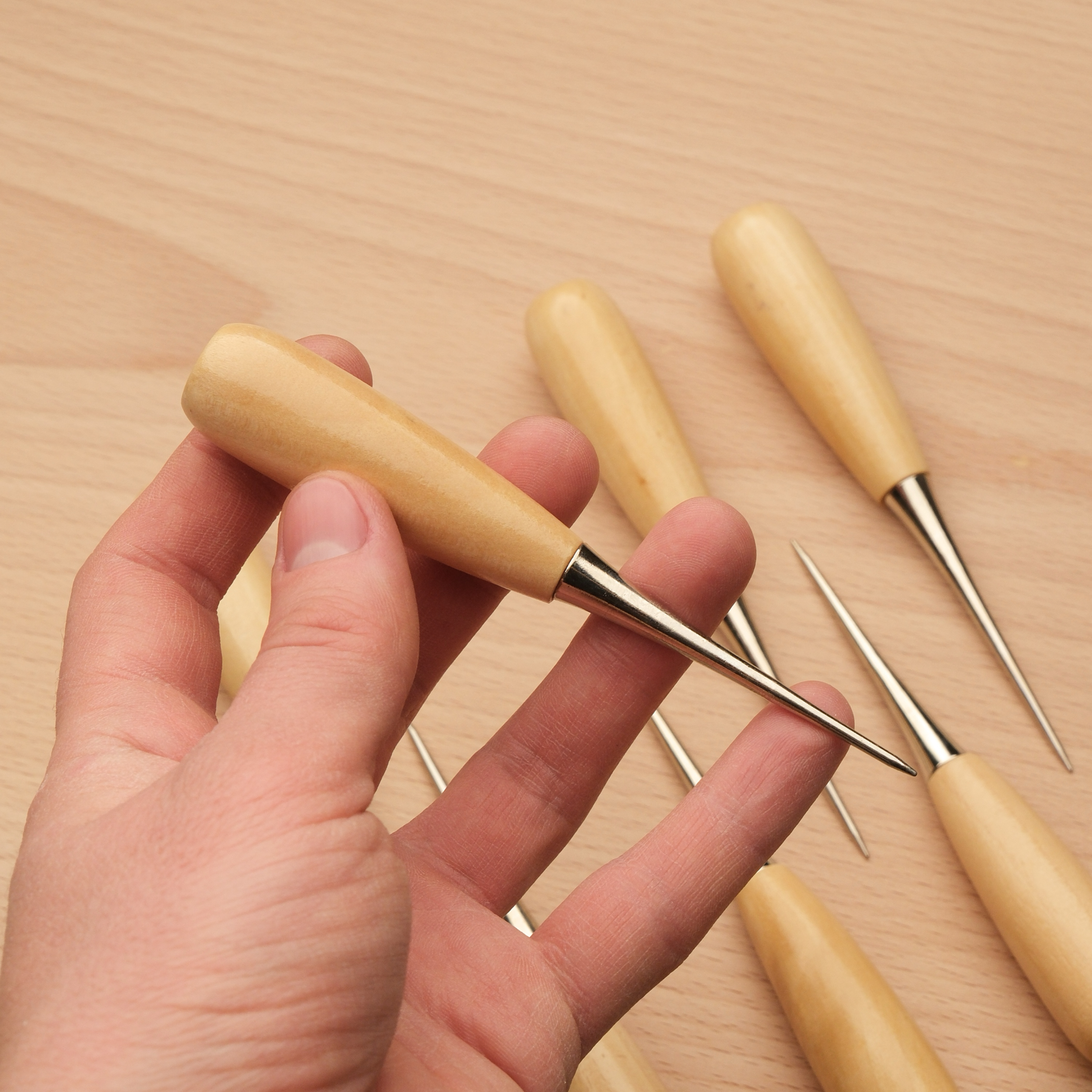Классическое шило с ручкой из светлого дерева пригодится вам в множестве задач. При необходимости переточите острие под нужную форму. Общая длина - 12 см.